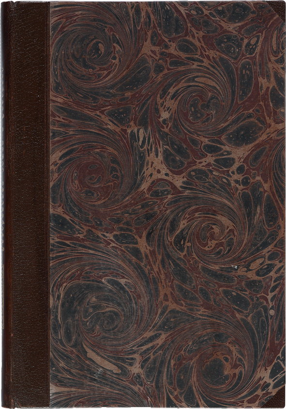 Во владельческом полукожаном переплете, стилизованном под переплеты эпохи. Гладкий корешок из коричневой коричневой кожи. На крышках коричневая мраморная буманга. Цветная раскладная карта. Немного карандашных помет в тексте. Профессиональные реставрации титульного листа.