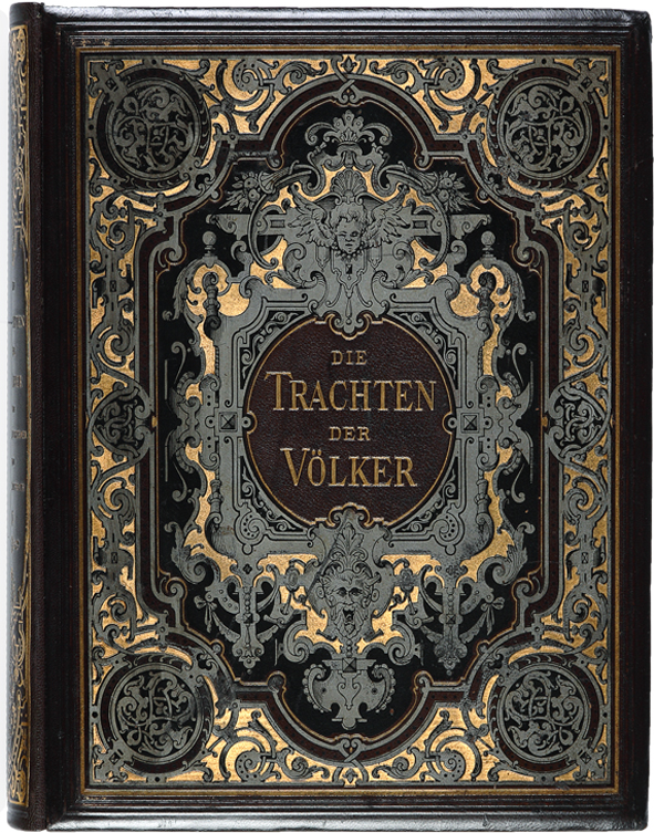 На немецком языке. Русский перевод названия: Рорбах К. Костюмы народов от начала истории до XIX века. Составлено из 104 иллюстраций, созданных и литографированных Альбертом Кречмером.
