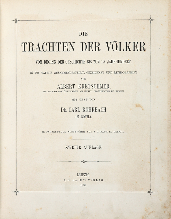 Die Trachten der Völker vom Beginn der Geschichte bis zum 19. Jahrhundert. In 104 tafeln zusammengestellt, gezeichnet und lithographiert von Albert Kretschmer