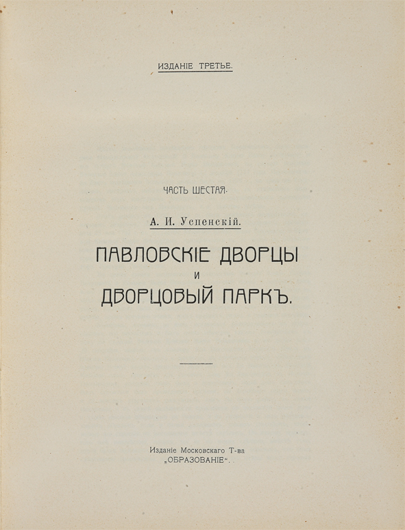 Часть 6 — «Павловские дворцы и Дворцовый парк» (автор — А.И. Успенский);