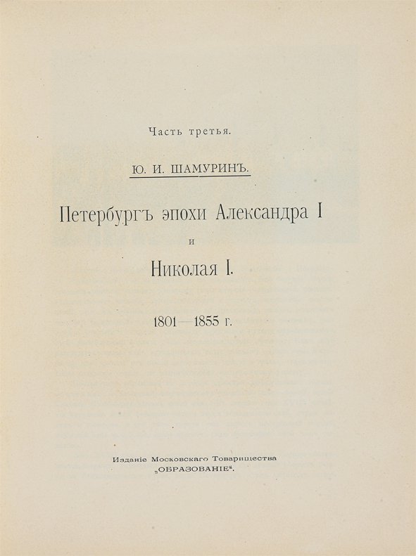 Часть 3 — «Петербург эпохи Александра I и Николая I (1801–1855 гг.)» (автор — Ю.И. Шамурин);