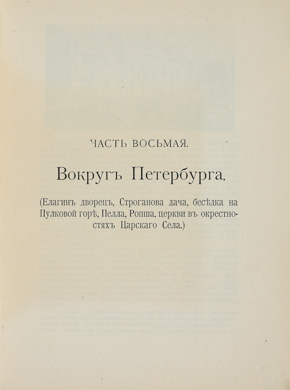 Часть 8. Вып. 2 — «Вокруг Петербурга» (Елагин дворец, Строганова дача, беседка на Пулковой горе, Пелла, Ропша, церкви в окрестностях Царского села);