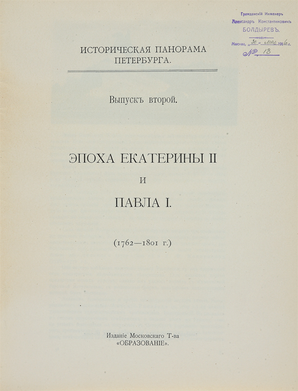 Часть 2 — «Эпоха Екатерины II и Павла I (1762–1801 гг.)»;