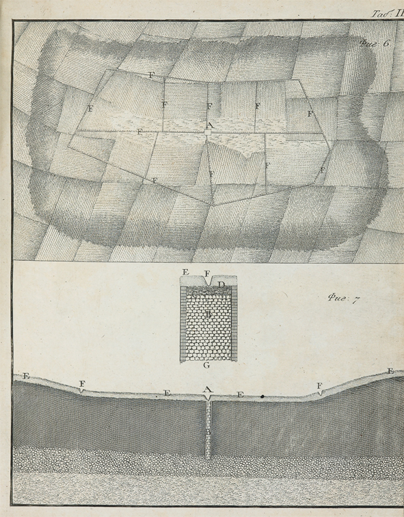 Издание содержит 30 гравированных таблиц с изображением каналов, рек, болот, карт местностей, разрезов почв и гидротехнических сооружений