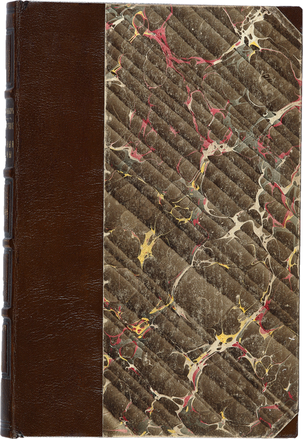 В полукожаном переплете, стилизованном под переплеты эпохи.