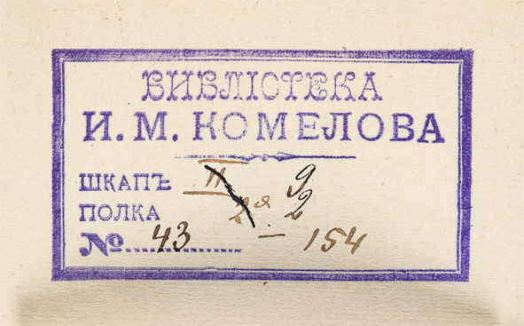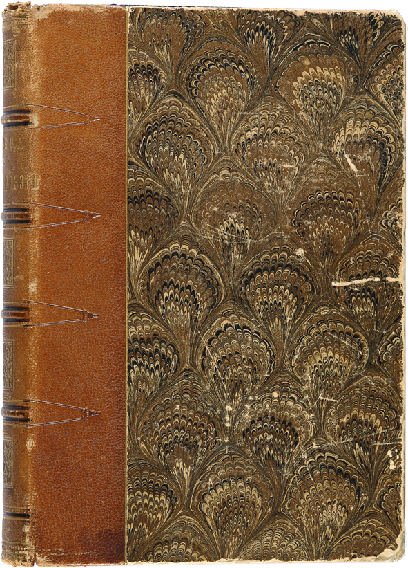 В добротном полукожаном переплете эпохи с золотым тиснением на корешке, выполненном в мастерской Газенея в СПб. (ярлык на нахзаце). Тройной крашеный обрез, форзацы мраморной бумаги, ляссе. Потертости переплета, утрата небольшого фрагмента корешка, разломы по форзацам. На первом свободном листе штемпельный экслибрис: «Библиотека И.М. Комелова». Редкие небольшие загрязнения. Хорошая сохранность. Экземпляр № 52 из специального тиража на слоновой бумаге 100 экземпляров.